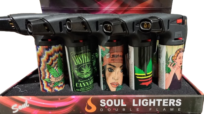 Soul Double Torch Lighter- MARIJUANA (Display of 15 )